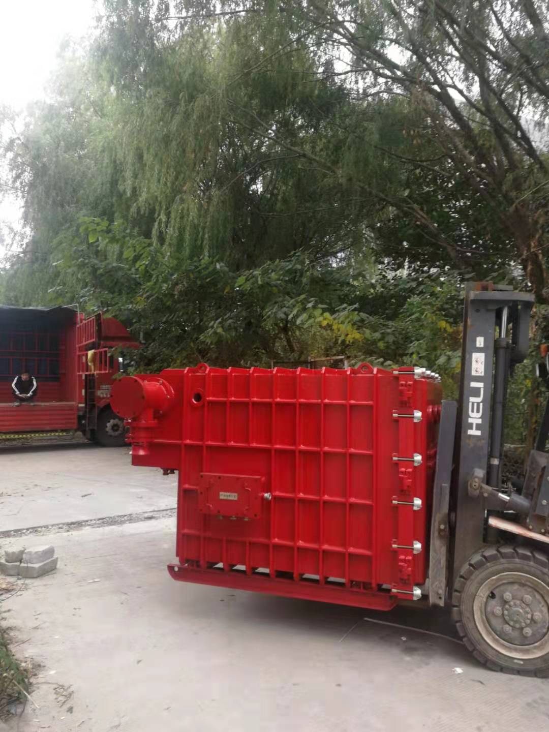 在我們的印像里,軟起動器應該都是小小的一臺,最大也不過50kg吧。來看看這臺軟啟動器,猜猜,它有多重?一輛九米長的卡車,只能裝下兩臺!而且車身明顯被壓的下降了!